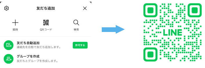 スマホのLINEアプリからQRコード読み込み画面を表示し、以下のコードを読み取ってください。