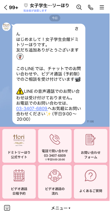 なお、LINEの音声通話でのお問い合わせは原則としてお受けしておりません。お電話でのご連絡は 03-3407-6809 へご連絡ください(平日9:00~20:00)